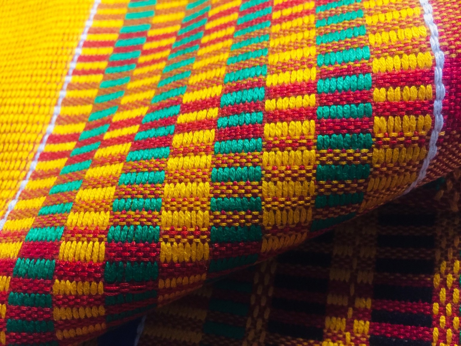 Another hidden symbolism of the Kete fabric reveals the message created by the patchwork realized from stitching together the narrow strips of fabric. The overall beauty and underlying symbolic representation of the Kete fabric begin with the narrow strips of woven fabric stitched together to obtain the larger Kete fabric. Given the unique creative intention of each weaver, the strips are designed (in terms of colouring, geometric patterns and cultural symbols) and patched in a way that will bring out the intended message of the fabric.